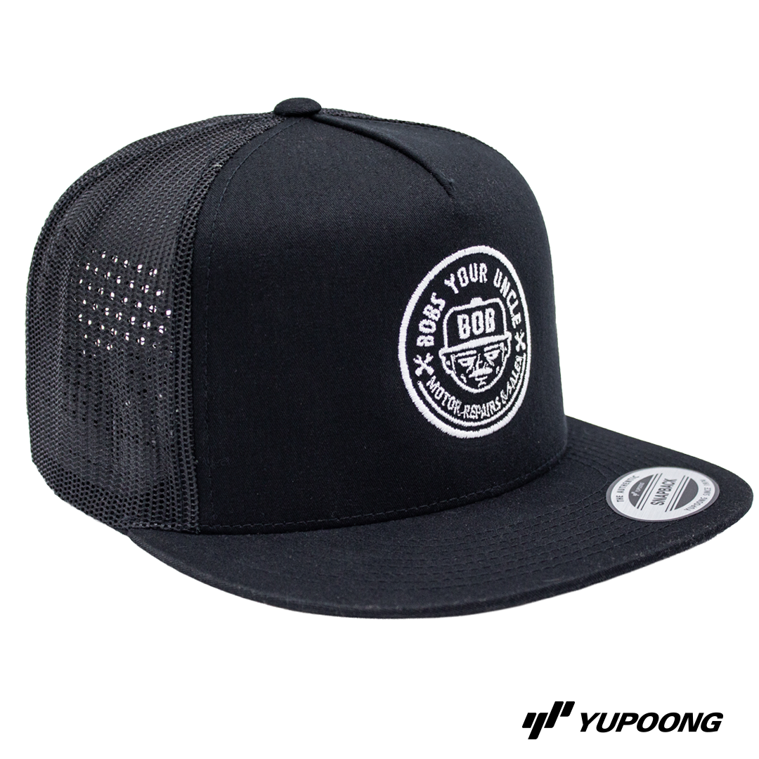 Svart/vit truckerkeps för dig som litar mer på gubbmek, kaffe och svordomar än på nybilsgaranti.